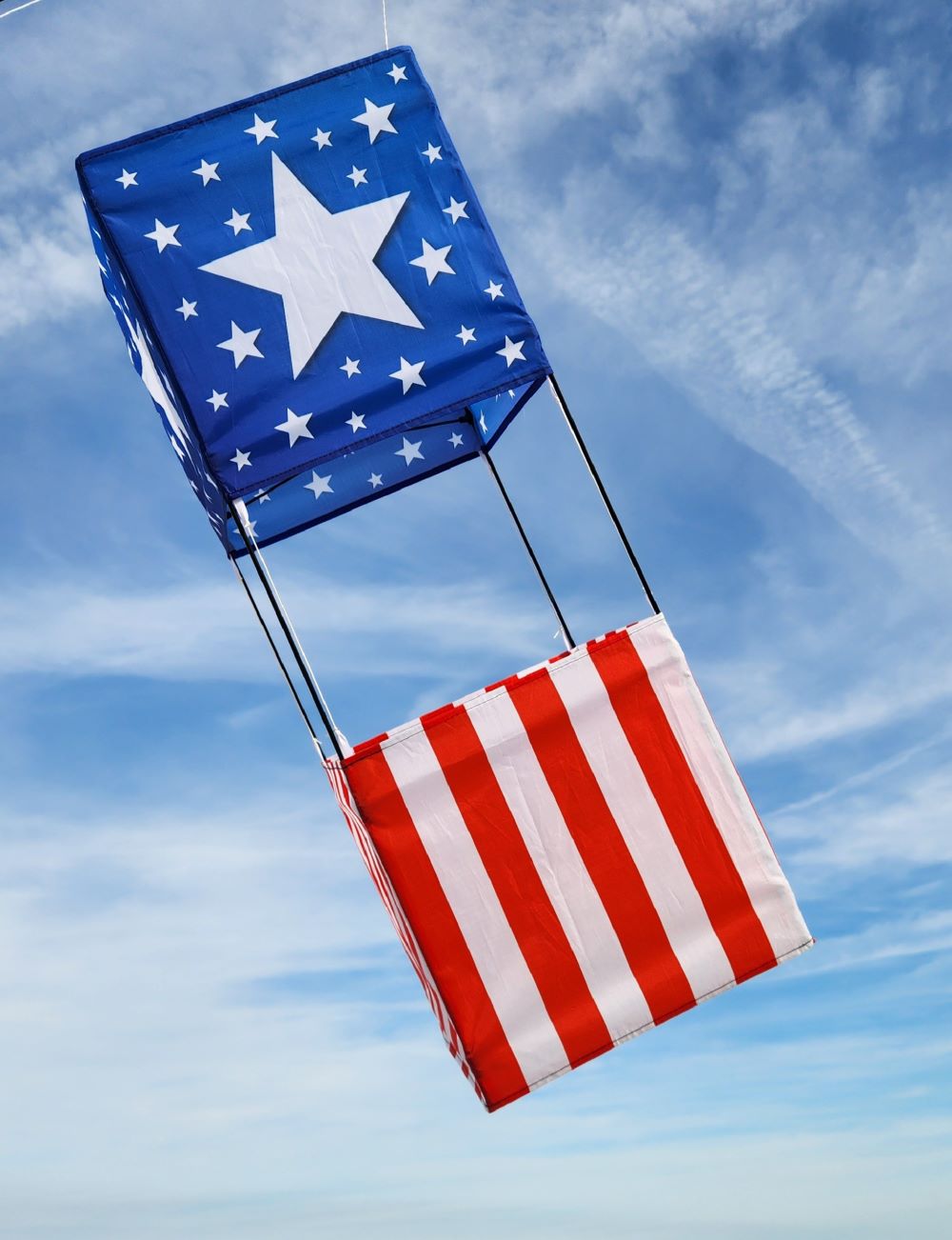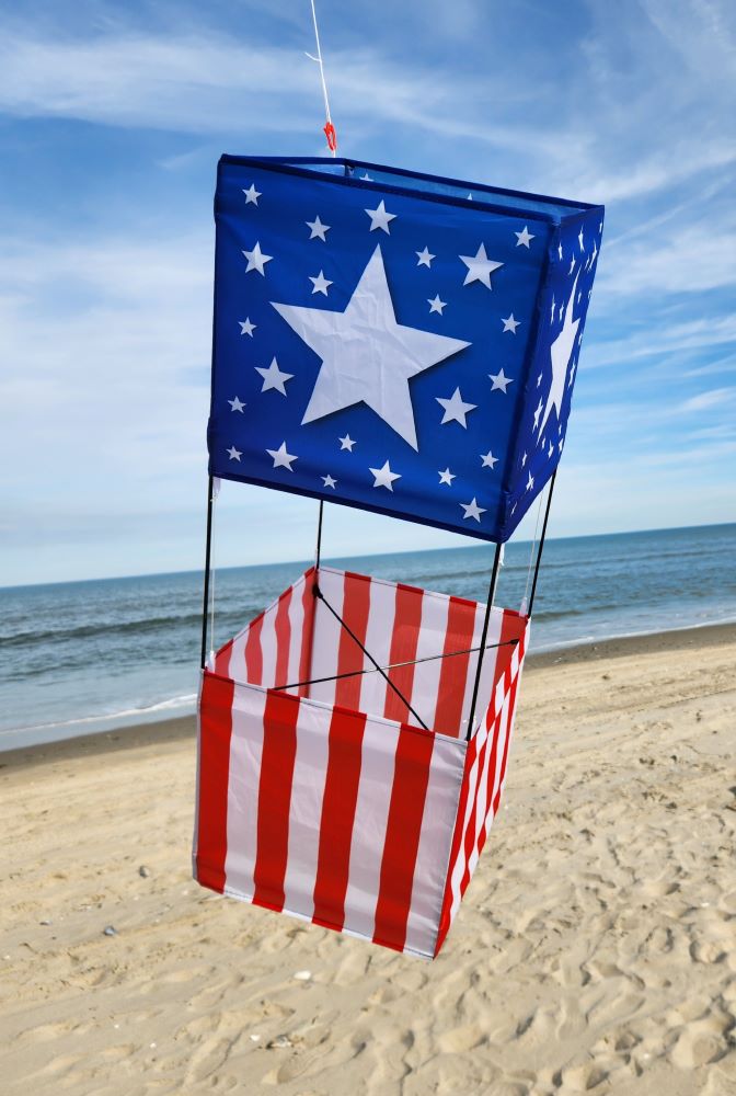 Show off your Patriotic spirit with the Liberty Box Kite. This all conditions box kite is an exceptional flyer due to its quality design and solid construction. The star field over blue along with the red and white stripes makes for the perfect blend of American spirit. Fly one today!