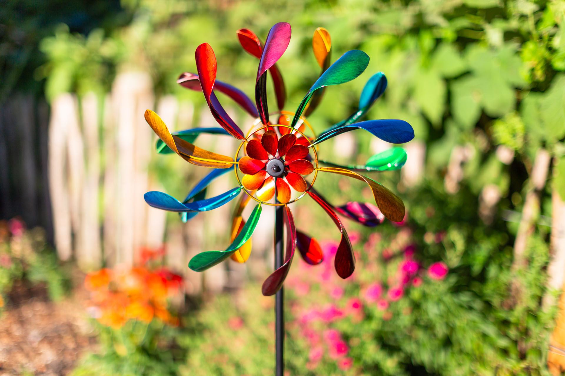 These beautiful kinetic metal pieces are the perfect accent to any home, patio, or garden. Simply place the art in your favorite indoor or outdoor location and watch the kinetic movement effortlessly turn these durrible and eye catching pieces in a hypnotic manner.