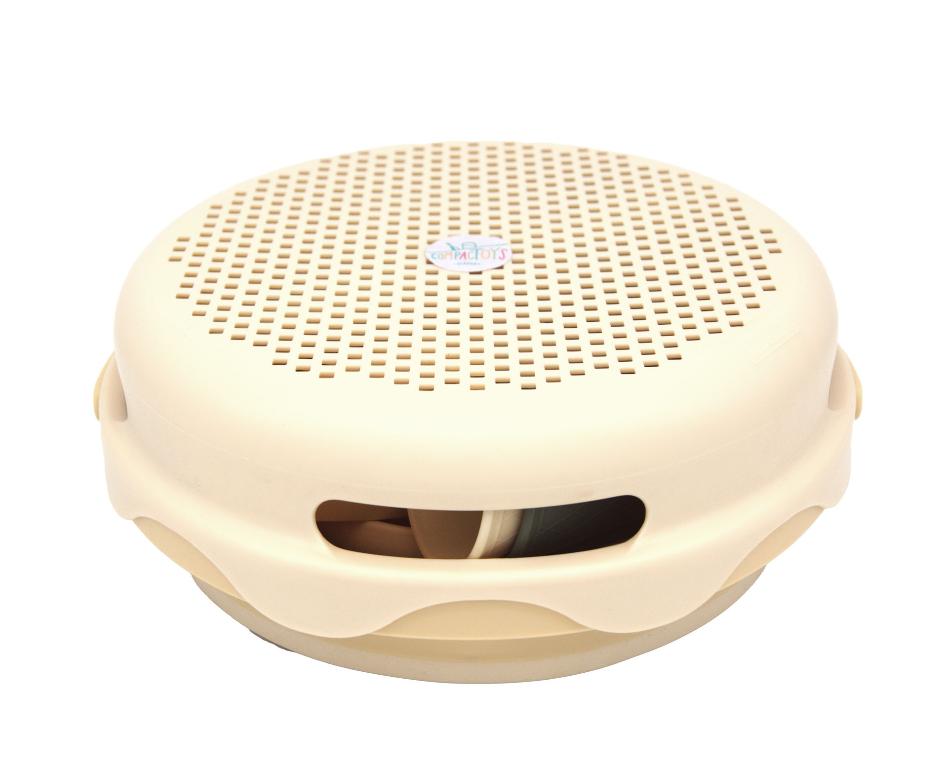 This innovative 7-piece beach toy set includes tools for digging, sieving, and raking in a patented space saving format. Imagine having all these exciting beach toys at your fingertips, conveniently tucked away in a compact 3.4" x 8.6" jpackage that easily fits inside a handbag, beach bag, or stroller basket. You can even attach it to your bag or backpack with the handy carabiner loop built into the collapsible 3-liter bucket.